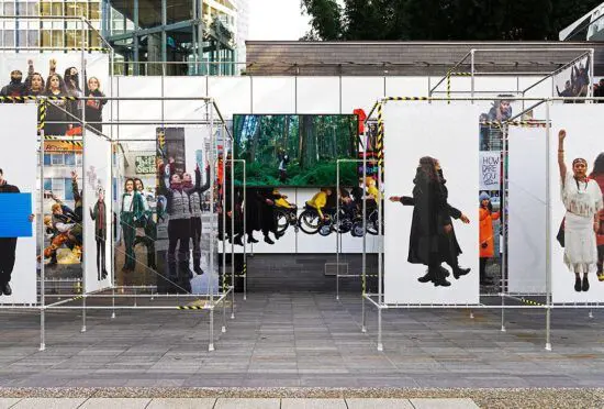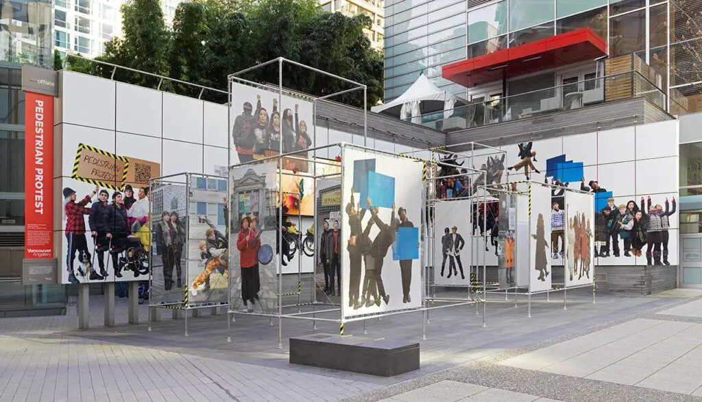 Evann Siebens + Keith Doyle, Pedestrian Protest, 2021, site-specific installation at Vancouver Art Gallery Offsite, April 9 to October 11, 2021, Photo: Ian Lefebvre, Vancouver Art Gallery