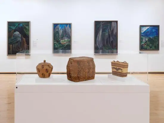 Born in Victoria, BC, Emily Carr (1871–1945) is widely recognized for her paintings of forested British Columbian landscapes that investigate the shapes, colours and rhythmic changes in nature. In this exhibition, Carr’s images of the forest and the coast are presented alongside work by some of her lesser-known female contemporaries—including Unity Bainbridge, Beatrice Lennie, Nan Lawson Cheney, Irene Hoffar Reid, Grace Wilson Melvin and Vera Weatherbie—together with baskets, cedar hats and cradle boards made at this time by Indigenous women—such as Amy Cooper, Mary Little and Gertrude Dick.