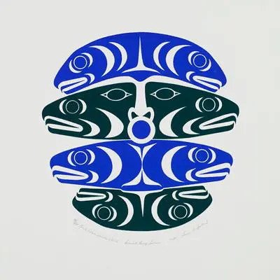 Susan Point, Swanisit Brings Salmon, 1981, screenprint on paper, Courtesy of the Artist, Photo: Kenji Nagai, Courtesy of Spirit Wrestler Gallery
