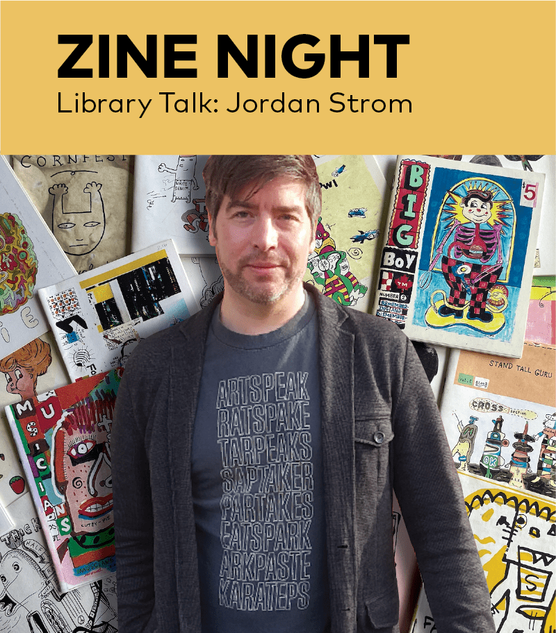 Join us for a talk with curator and historian Jordan Strom, presented in conversation with the exhibition Copy Machine Manifestos: Artists Who Make Zines. Strom’s presentation will focus on British Columbia–based art zines, produced in the 1990s and 2000s, that featured collaborative drawing and collective collage.