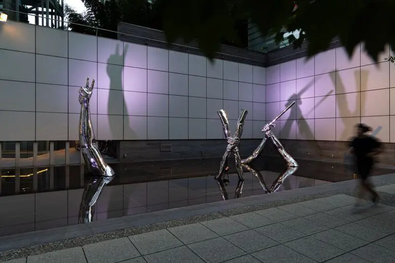 Internationally recognized artist Hank Willis Thomas works across several disciplines and mediums and has recently created large-scale sculptures and monuments for the public realm. This installation at Offsite will be the first time three of Thomas’ polished stainless-steel sculptures will be exhibited together.