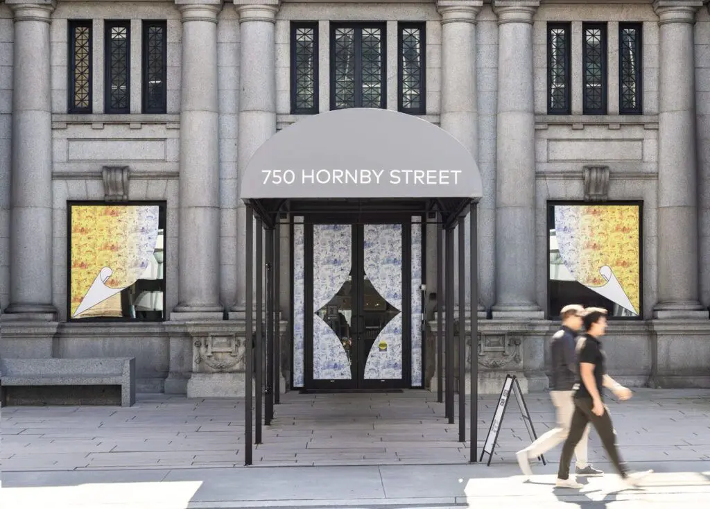 The installation will run through July 1, 2025 on the Gallery’s Hornby Street windows and door.