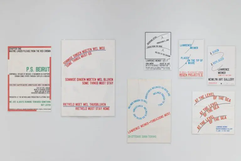 OF & ABOUT POSTERS consists of 250 posters made between 1965 and 2021, and will be complemented by a selection of Weiner’s editions, books, audio works and ephemera that attest to the various ways in which his work has circulated in cultures at large.