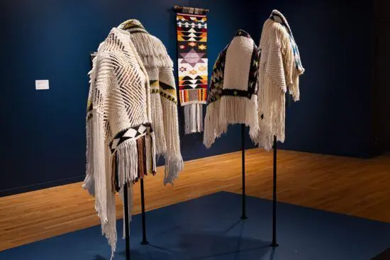 Rooted Here: Woven from the Land celebrates the work of four prominent local Salish weavers: qʷənat, Angela George (səlilwətaɬ/Tsleil-Waututh); Chepximiya Siyam’ Chief Janice George (Sḵwx̱wú7mesh/Squamish); Skwetsimeltxw Willard “Buddy” Joseph (Sḵwx̱wú7mesh/Squamish); and Qwasen, Debra Sparrow (xʷməθkʷəy̓əm/Musqueam). The exhibition establishes important contexts for understanding each artist’s career, including the long history of Salish weaving, the rootedness of these traditions in the land and its resources, the interruption of Salish weaving by colonialism and the artists’ significant roles in its contemporary revival and renewal. It also creates an opportunity to better understand the crucial role these artists have played in designing the Vancouver Art Gallery’s new building and the rich significance of its woven surface.